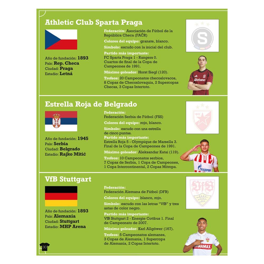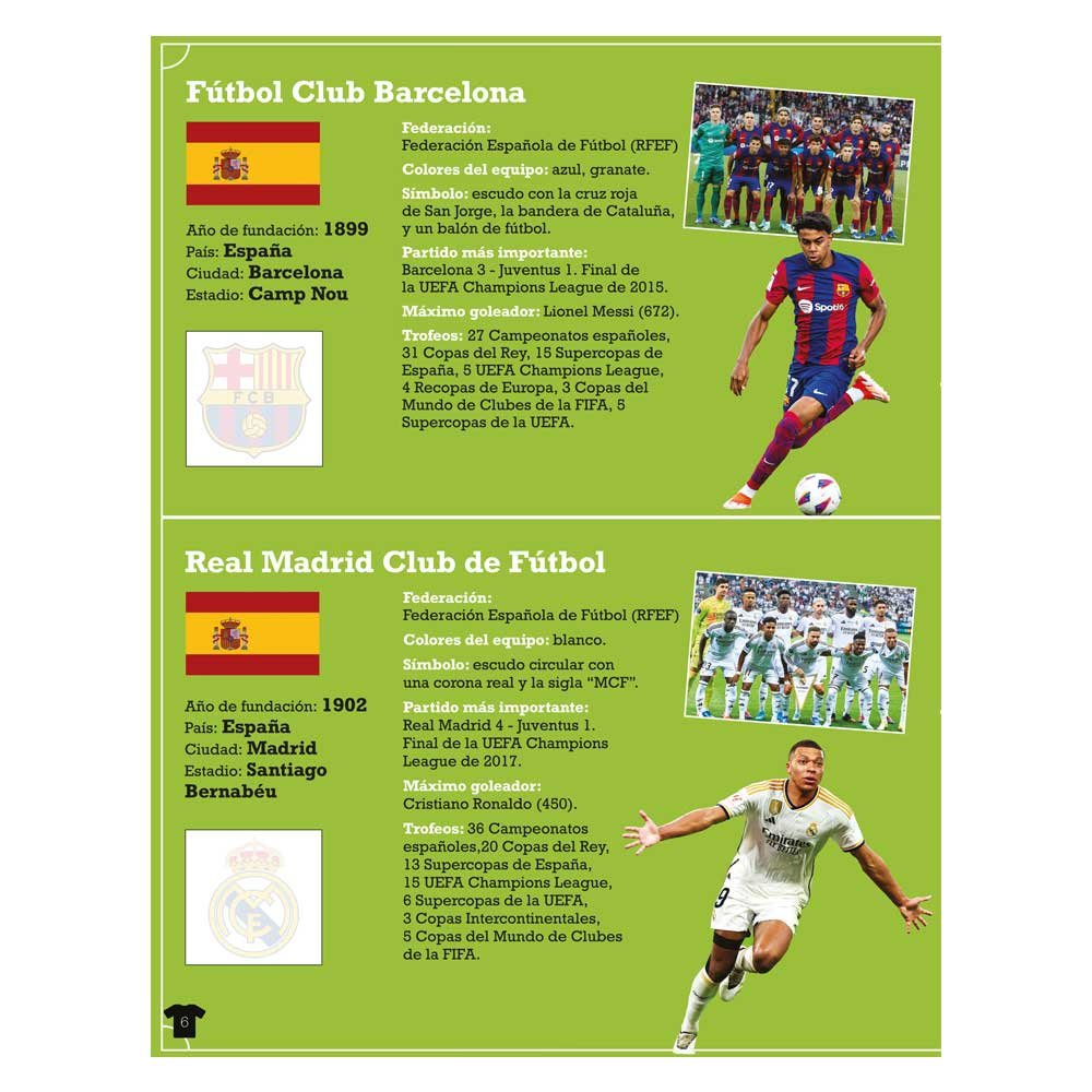 Copas y trofeos, partidos inolvidables y máximos goleadores que han marcado la historia de estos increíbles equipos. Y, para terminar fantásticas y coloridas PEGATINAS con los logotipos de los clubes.