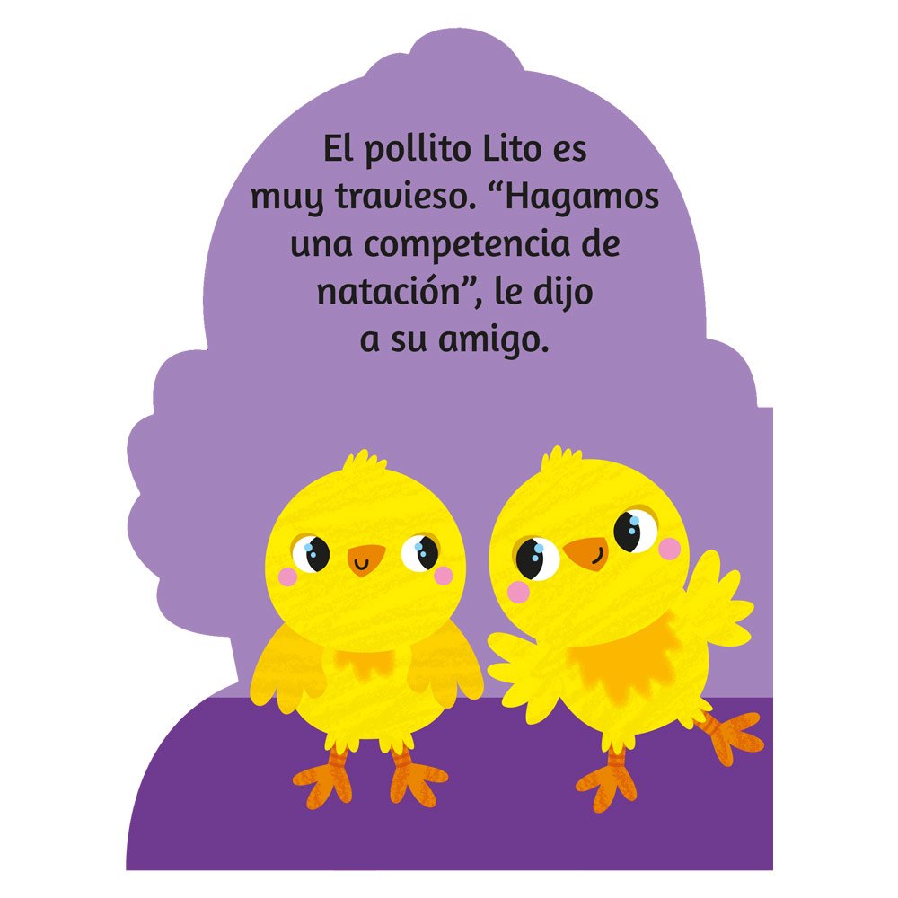 Este libro de cartón trata sobre Lito el pollito y su competencia de natación. Es una adorable historia acompañada de lindas imágenes del pollito y sus amigos.